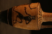 2025.97.0031.jpg | Detail view of the side of an Attic black-figure lekythos, showing a satyr advancing to the left.